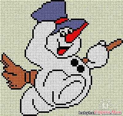 - Свяжите шапочку, наденьте ее на голову снеговика, пришейте в нужном месте стеклярус и бисер, чтобы получились брови и глазки.